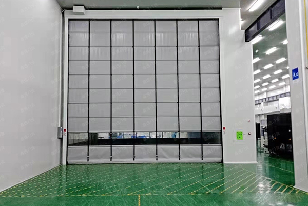 煙臺捷曼門業有限公司,高強度環保聚脂纖維PVC簾布,雙面聚氯乙烯涂層,多種色彩選擇(黃色、藍色、灰色等)防腐,防紫外線,防鹽,厚度為0.8MM,耐低溫-30C°。